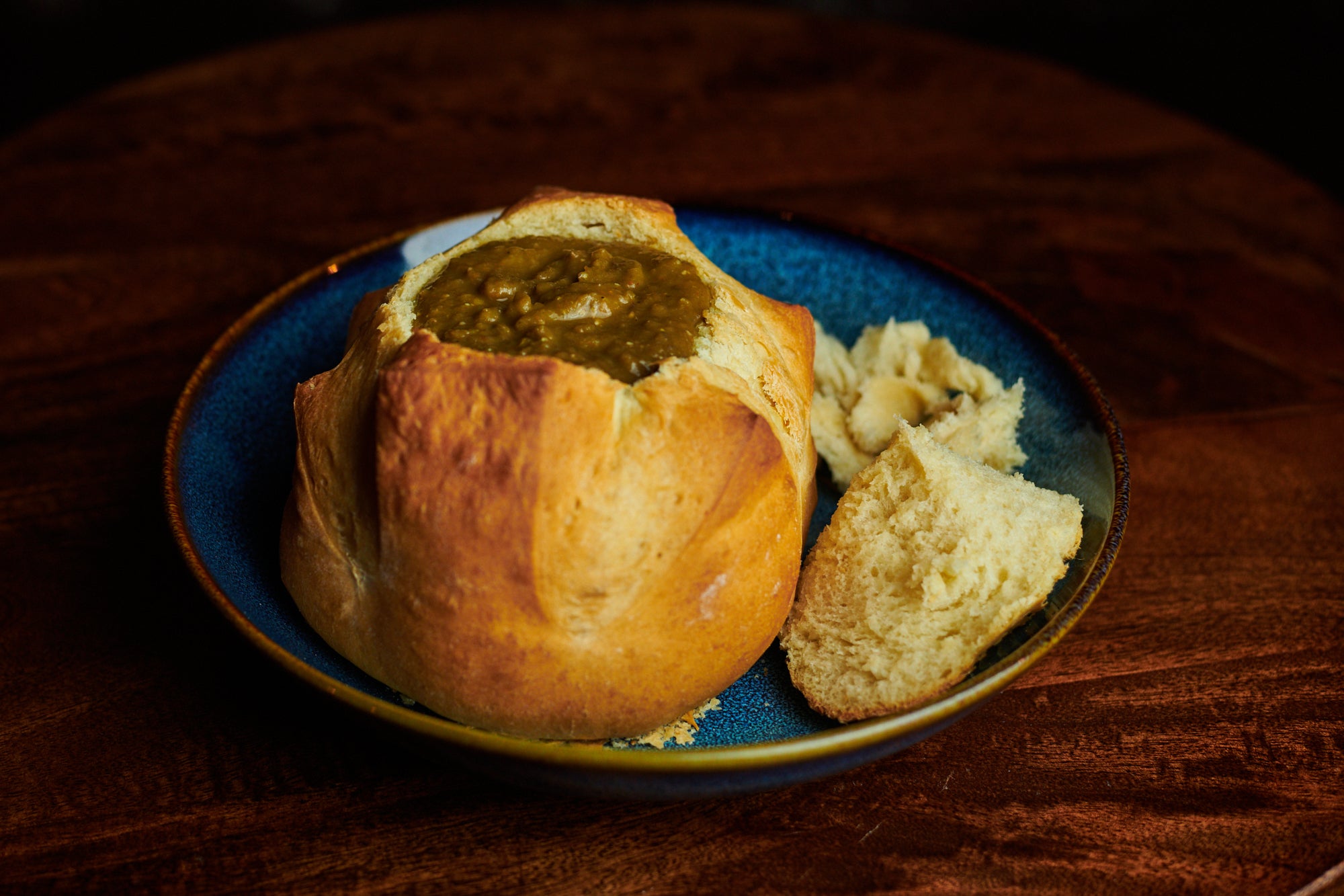 This is our house made lentil soup. It is served in out fresh baked bread bowl. We will package it in a cup for transport. So that you may pour it into the bread bowl which will be supplied so that you ensure to have it hot and fresh as if you were enjoying it at the restaurant!