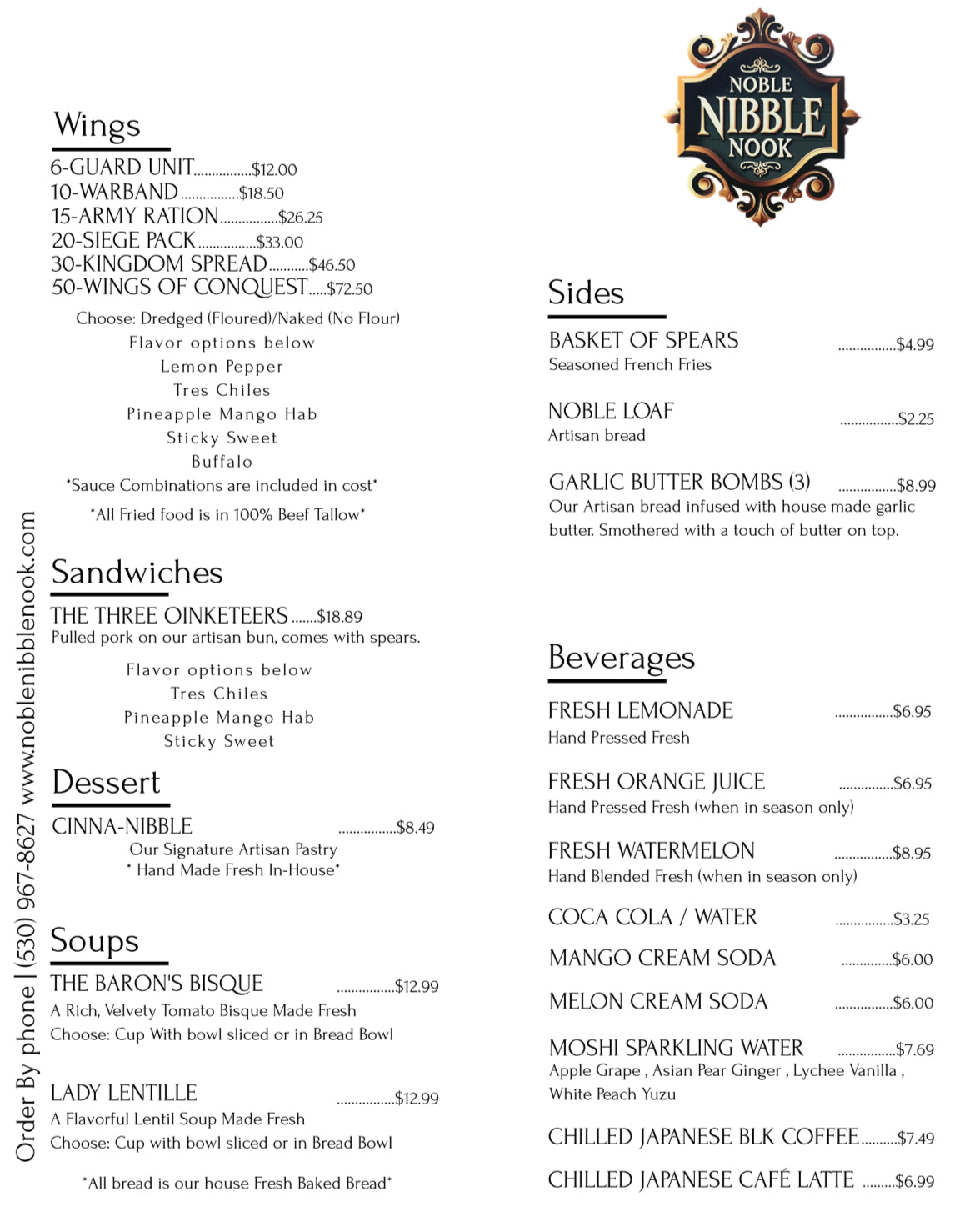 Fresh-baked from our signature Noble Loaf dough, these golden, bite-sized bombs are bursting with house-made garlic butter, herbs, and a touch of sea salt. Soft on the inside, lightly crisp on the outside, every bite releases a rush of buttery, garlicky richness that melts on the tongue. Served warm — perfect for sharing or pairing with Baron’s Bisque for a truly noble indulgence.